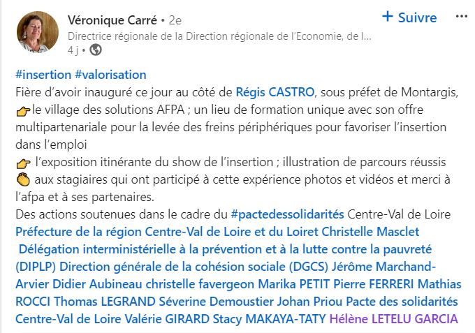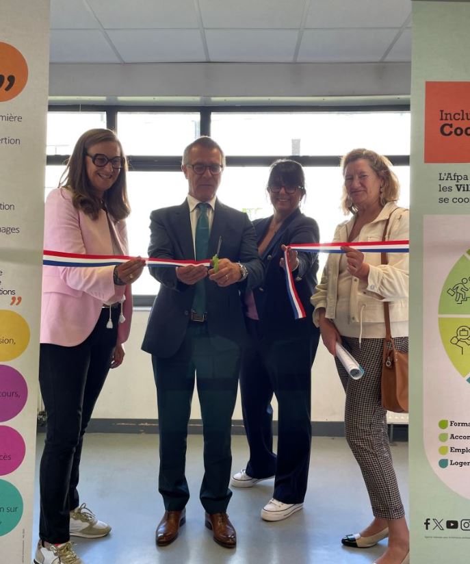 Ouverture officielle de l'antenne du Village des solutions d'Olivet à Montargis par Régis Castro, Sous-Préfet de Montargis, Véronique Carré, Directrice régionale DREETS, et pour l’Afpa, Valérie Girard, Directrice d’Olivet et Montargis, et Hélène Letelu Garcia, Directrice régionale.