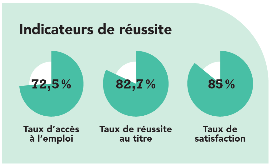 Le taux de réussite au titre est un indicateur très important et suivi depuis de nombreuses années. Le fait d’être certifié augmente la probabilité de trouver un emploi dans les six mois suivant la formation.