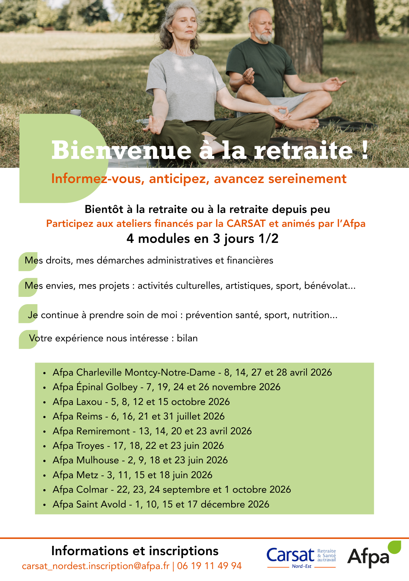 Infos et inscription : carsat_nordest.inscription@afpa.fr | 06 19 11 49 94